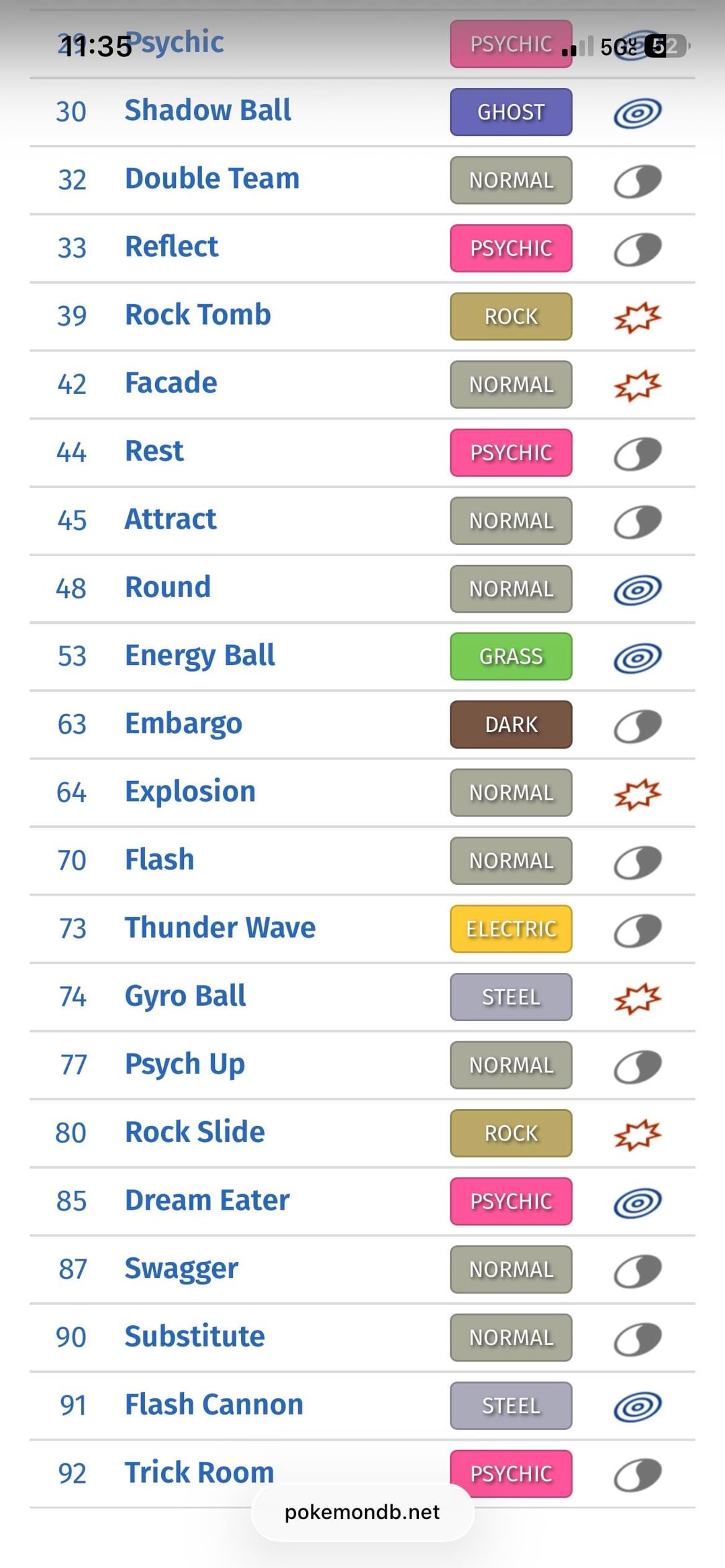 (The first image is some of his Gen 5 learnset. The second is Gen 8.)