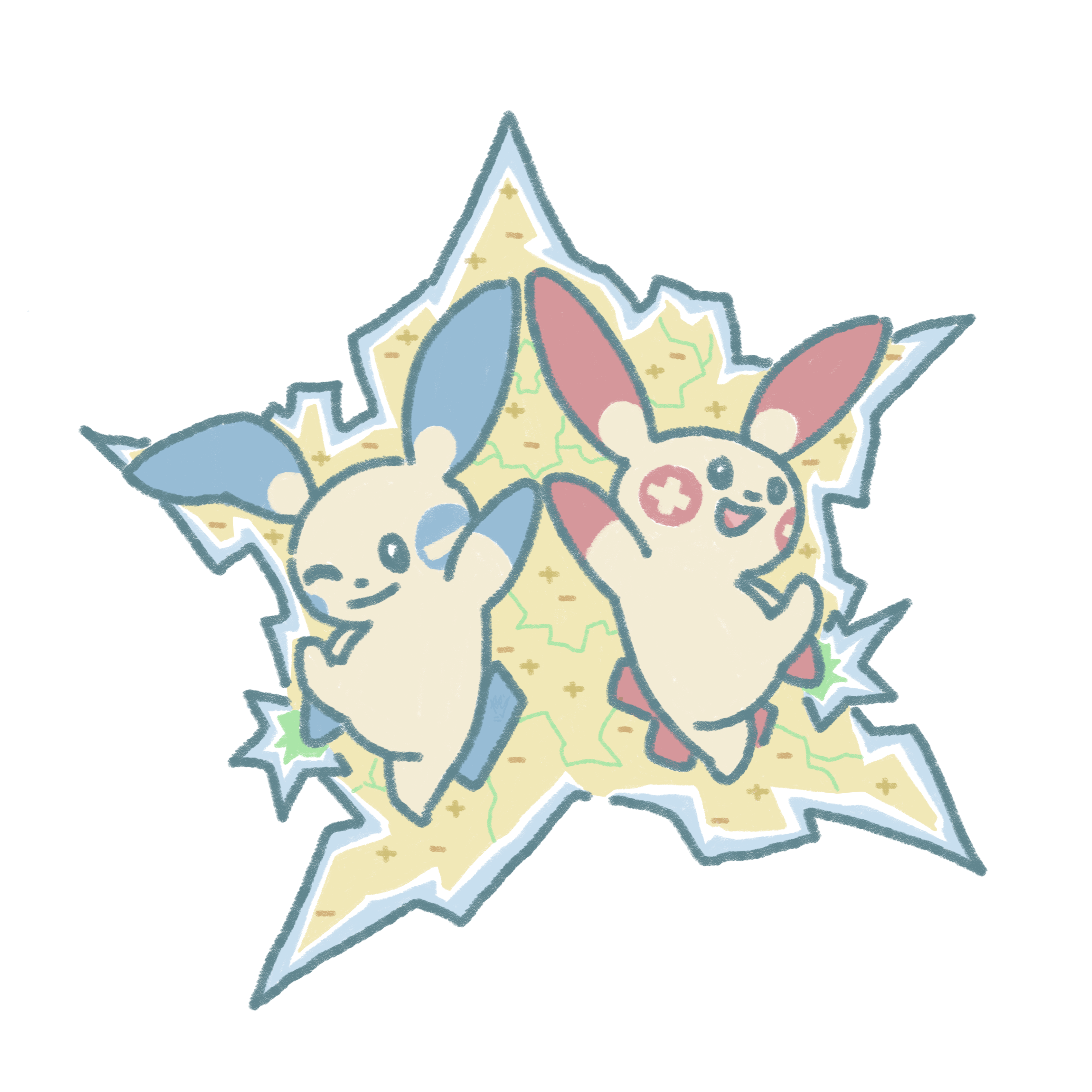 Plusle and Minun in my style by inthehxightse Write A CommentYou must be logged in to post a comment.