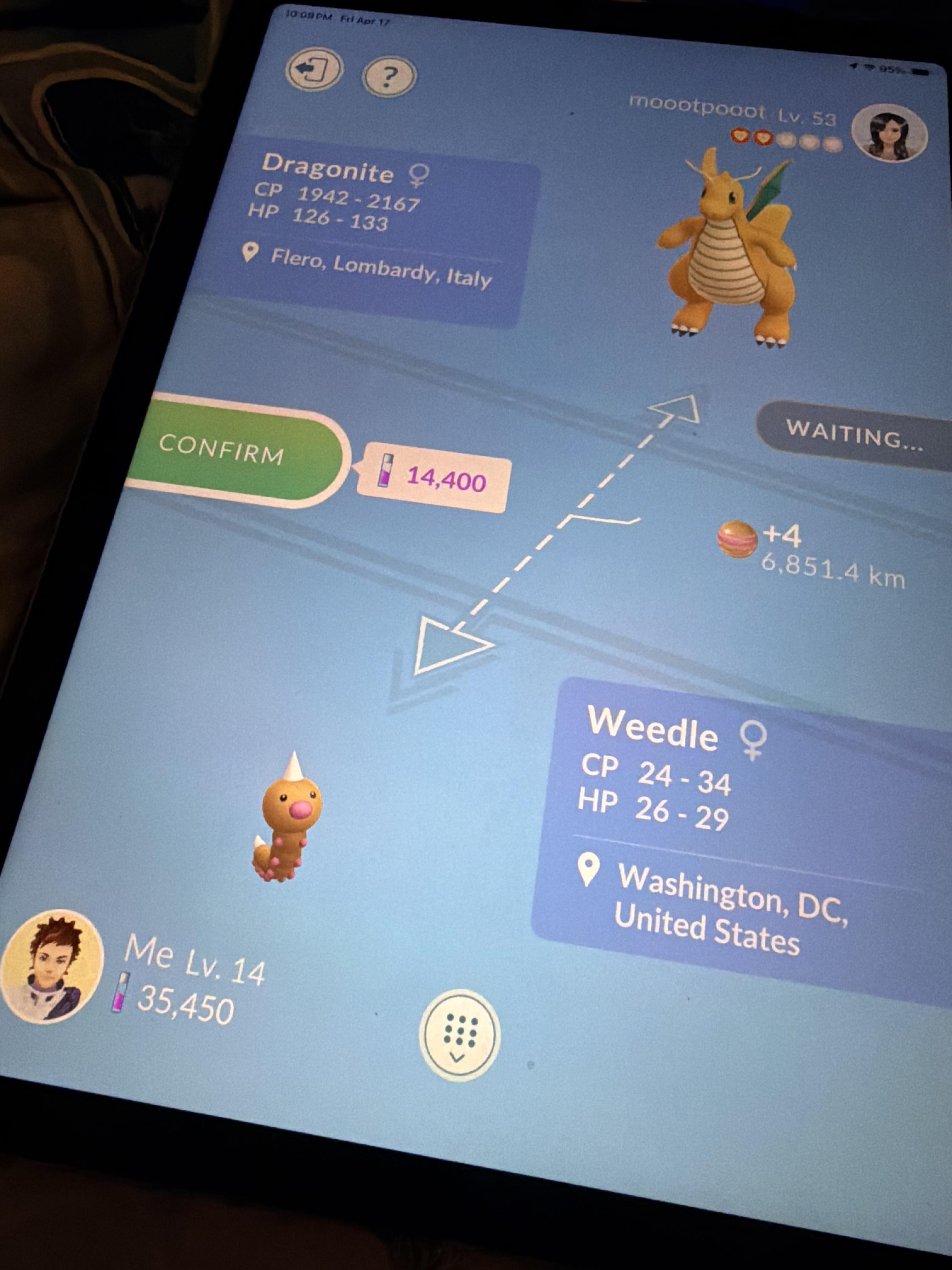 My nephew is new to pokemongo with minimal knowledge and he asked me for groudon but he doesn’t have enough stardust so I gave him a dragonite. I told him to give me whichever pokemon and he said he had nothing to give me 😭 mind you we were looking at his pokemon storage together. Then he said oh! you can have this one. 1 star 29 cp weedle LMAO love it