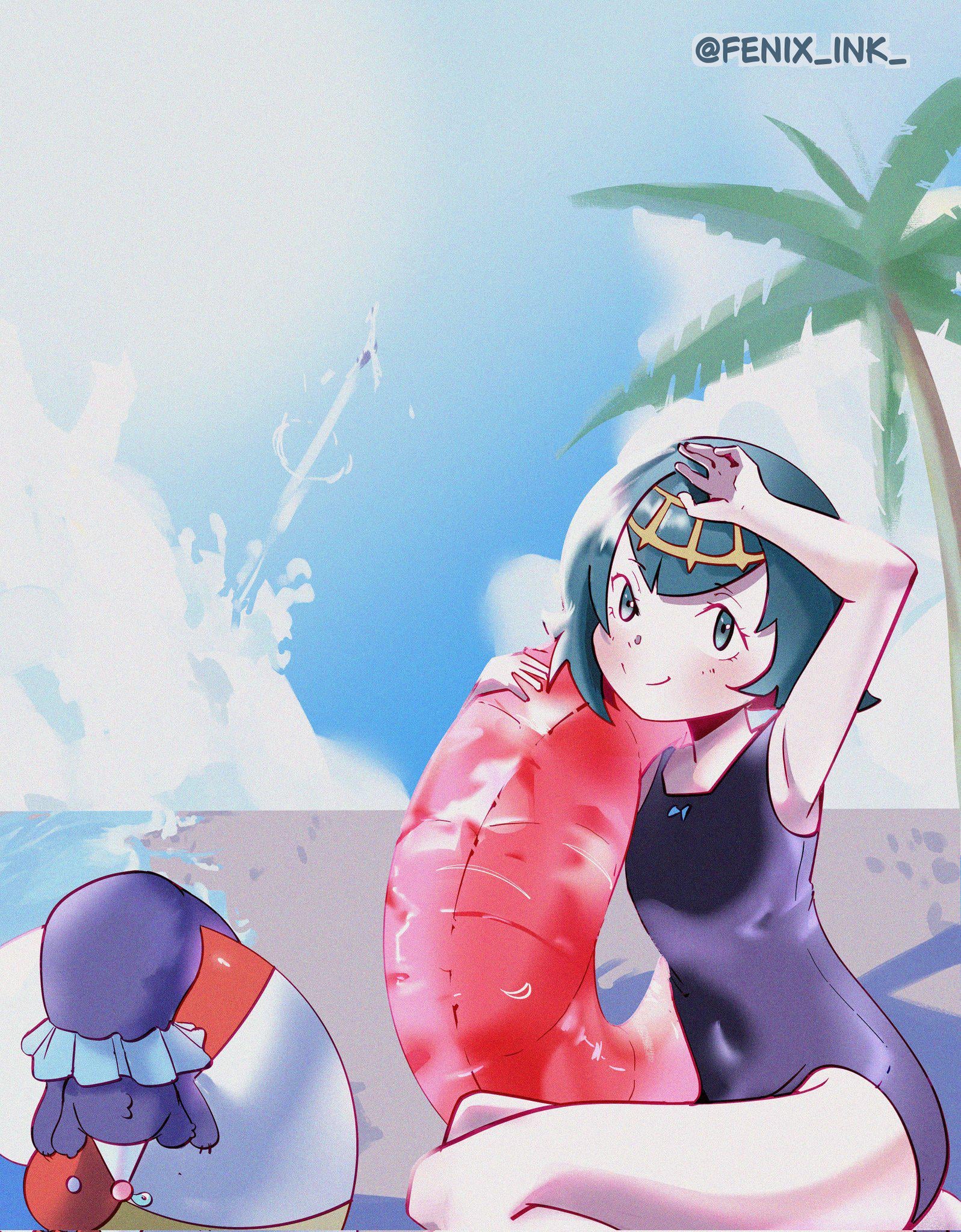 Hi, I made a drawing of Lana at the beach (●’◡’●)