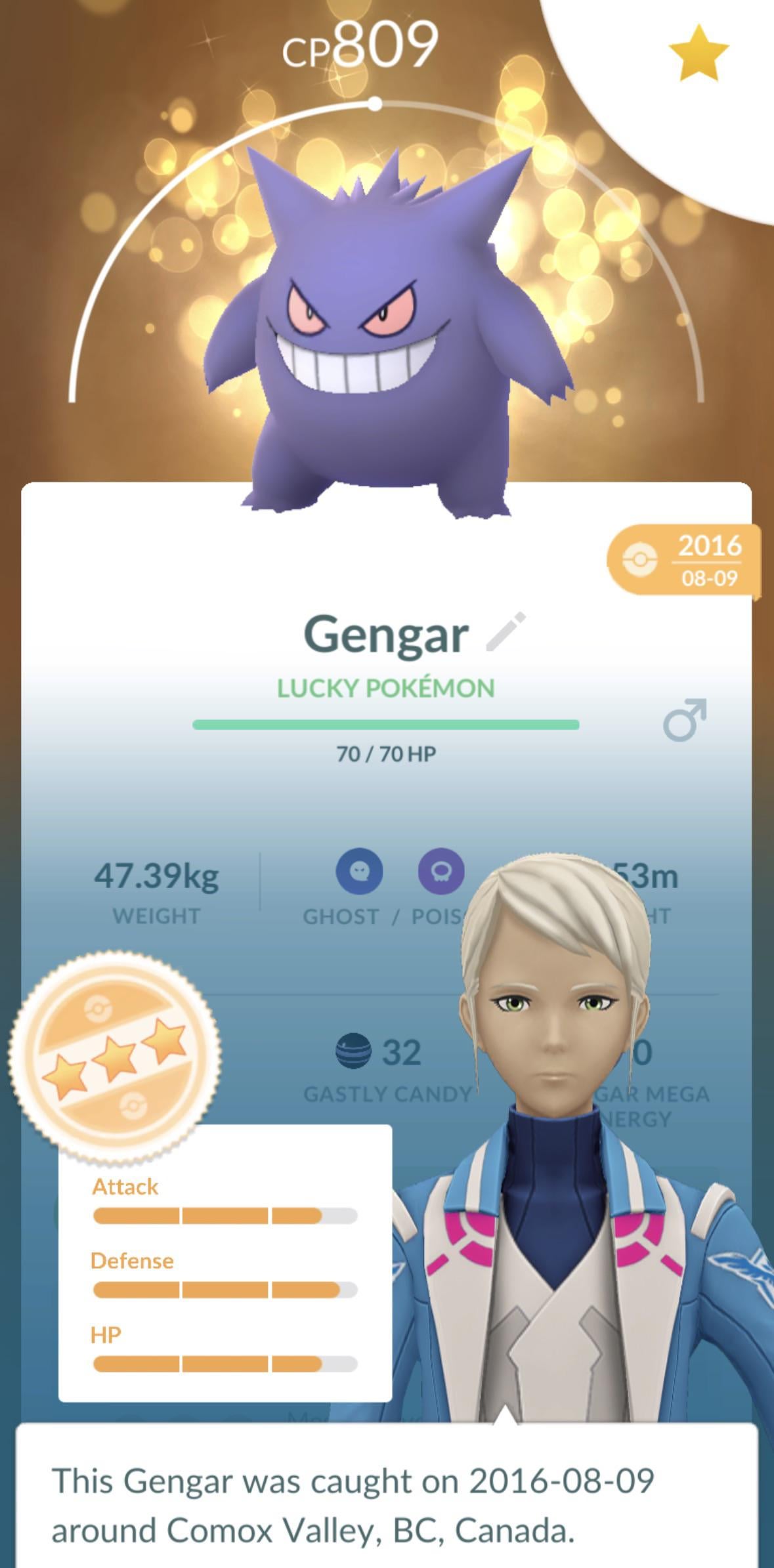 Returning to the game for the first time in a while. Gengar always been my fav Pokémon but I’m wondering why he’s so low cp? What do the 3stars mean when his cp can’t even go higher than 2800 when powered up? Also wondering why his big attack isn’t ghost or poison… Nver heard of a ghost Pokémon with focus blast