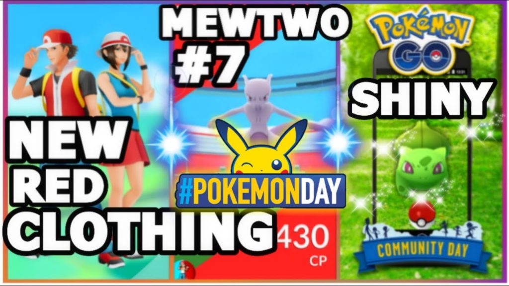 My 7th Mewtwo EX raid in Pokemon GO. Community day shiny Bulbasaur and new trainer Red clothing male and female.…