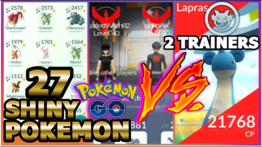 We successfully beat Lapras with 2 trainers on are first try. My 27 shiny Pokemon and some of my medals.…