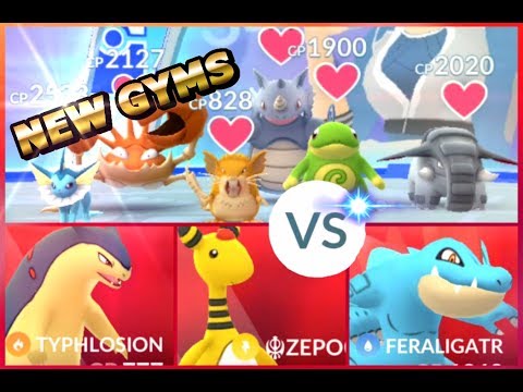 The first full new Gym battle! Level 6 Gym Politoed Muk Venusaur Victreebell Feraligatr Kingler Typhlosion Vileplume Tentacruel Rhydon Ampharos…