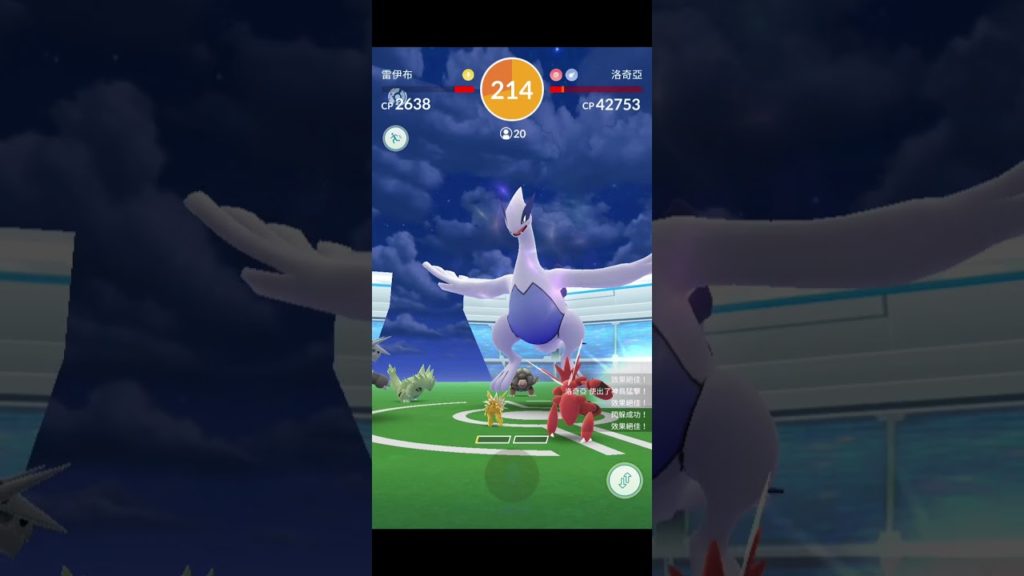 Pokémon GO 洛奇亞孵出團體戰全記錄 日期時間: 2018/04/02(一) 18:03:49 道館:垂柳能量箱(牯嶺街公園旁,座標:25.027910,121.518017) IV值:攻12/防15/體10/82% (CP2004/HP132) 對戰人數:20人 對戰隊伍:班基拉斯、雷伊布、雷丘、刺甲貝(未上場)、雷公(未上場)、雷公(未上場) source